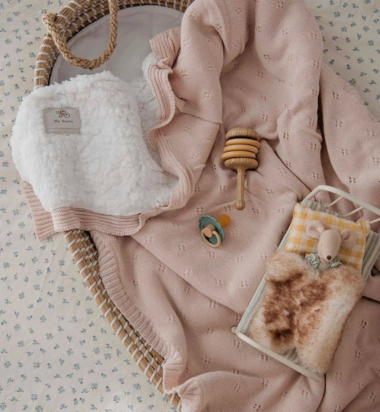 אזל במלאישמיכת פוינטל סרוגה| Pink Pointelle