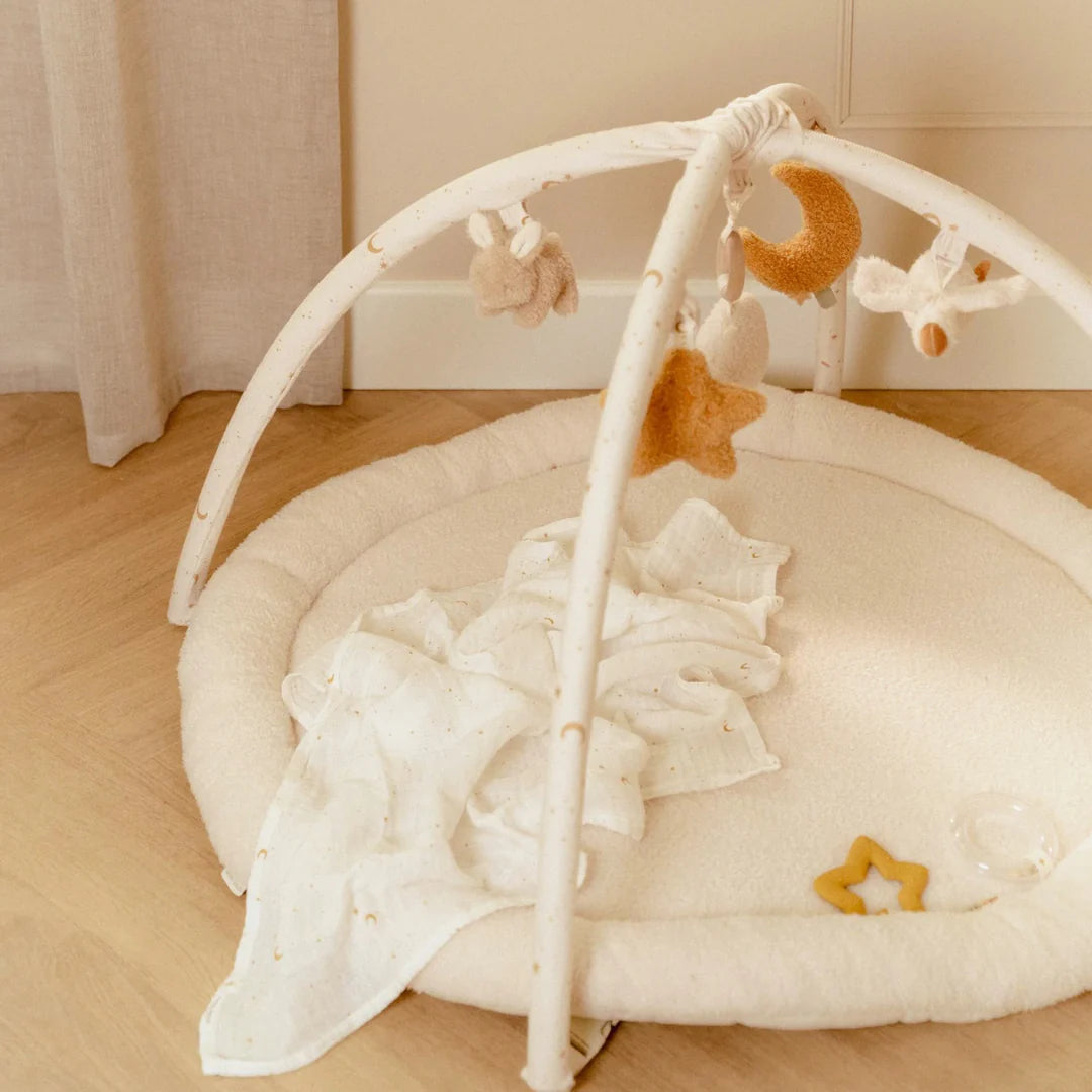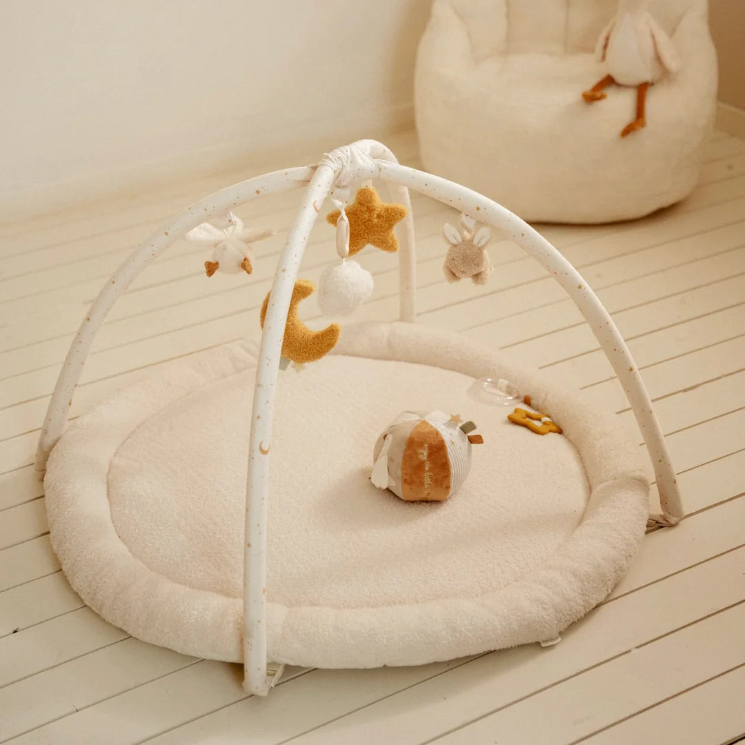 מזרן פעילות קסום בצורת פרח, בגוון ורוד רך ונעים לעין. הוא כולל שני קשתות גדולות ו-5 צעצועים רכים שמעודדים חקירה וגילוי: צבי, ציפור, פרח, פטרייה ותות. יש כאן כל כך הרבה מה לראות, לגעת ולשמוע – חוויה מושלמת להתפתחות חושית ולתיאום עין-יד כבר מהחודשים הראשונים.
