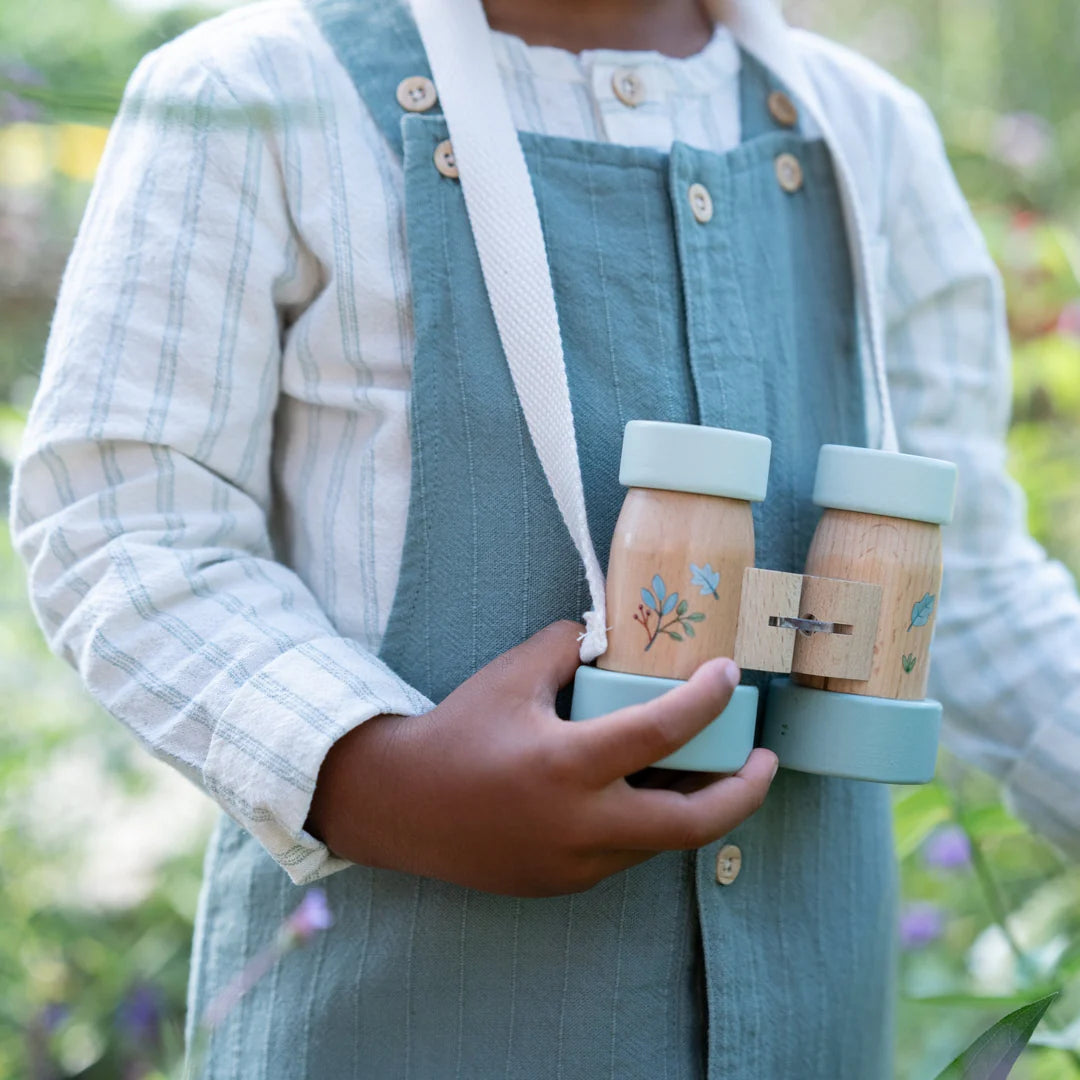 המשקפת מגדילה באמת ומאפשרת התאמה למרחק בין העיניים, כך שהראייה נוחה וברורה. עשויה עץ איכותי ועמיד, קלה לאחיזה ומתאימה לידיים קטנות. שרוך הכותנה עם סגירת סקוץ’ מאפשר תלייה בטוחה ונוחה על הצוואר – להרפתקאות בגינה, בטיולים או במשחקי תפקידים בבית.