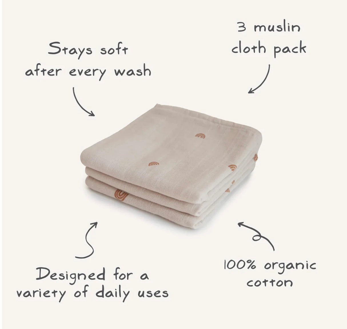 סט חיתולי מוסלין כותנה אורגנית – 3 יח’ – Mushie