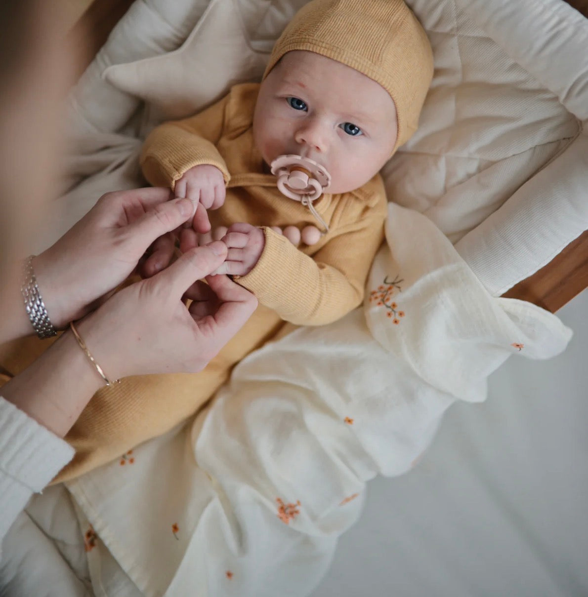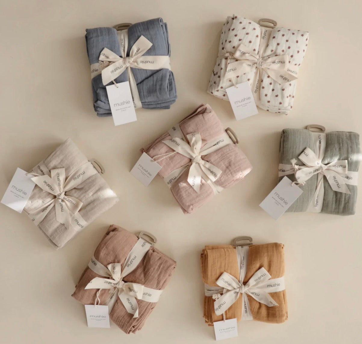 סט חיתולי מוסלין רכים במיוחד מבית Mushie, עשויים 100% כותנה אורגנית.