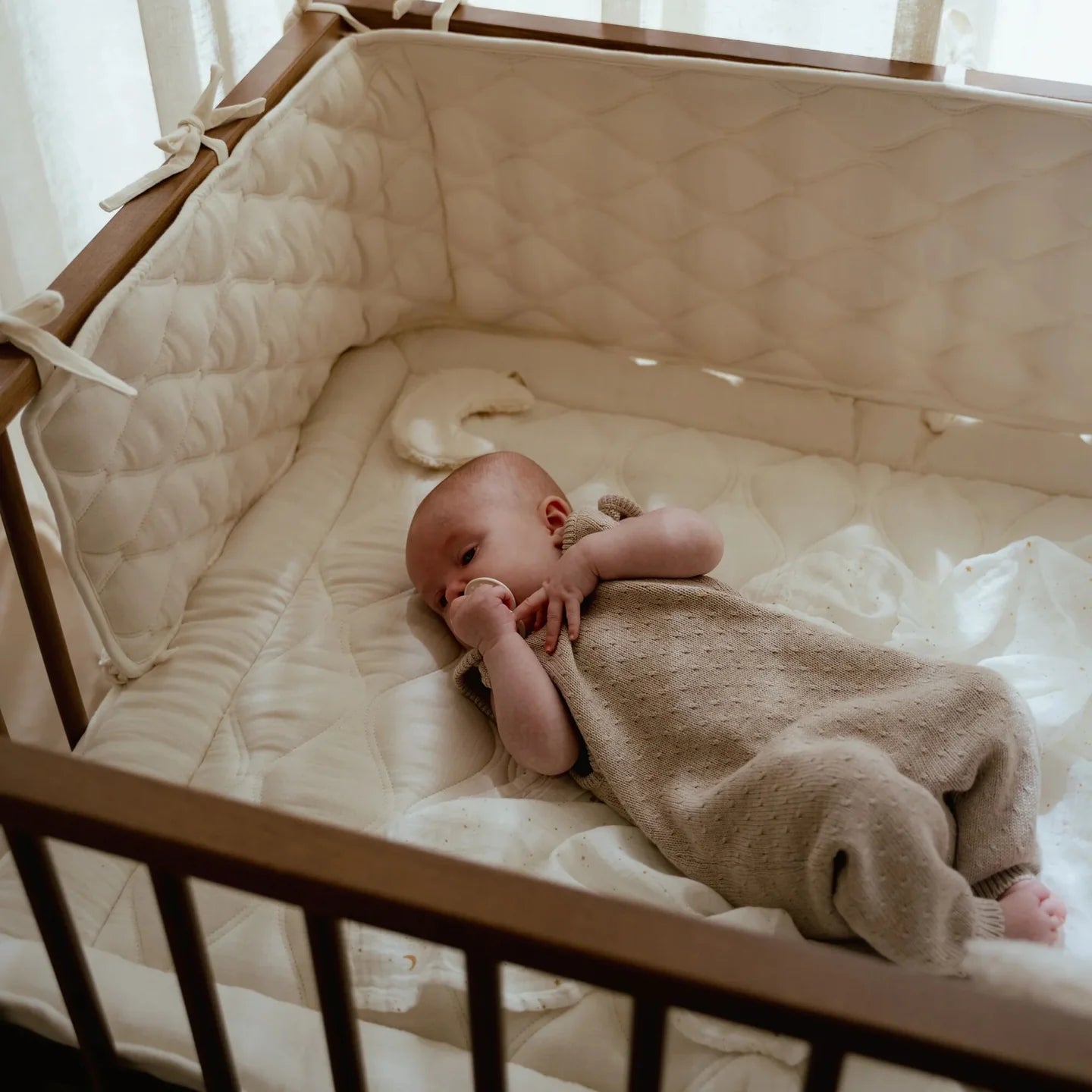 המילוי היציב מספק תמיכה נוחה ובטוחה גם בזמן משחקים אנרגטיים, והבד עשוי 100% כותנה אורגנית רכה ועדינה למגע עם עור התינוק. כתוספת מתוקה במיוחד – תליון ירח קטן שמזמין ידיים סקרניות לגעת, למשוך ולחקור
